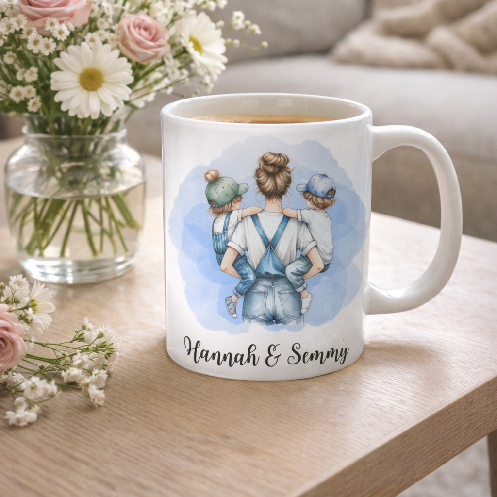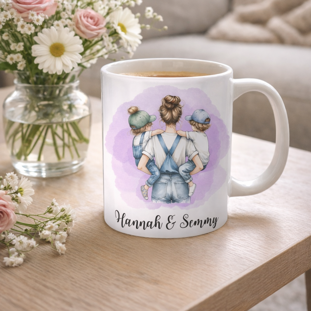 Maak elk koffiemoment extra bijzonder met deze gepersonaliseerde mama & kinder mok. Een liefdevol ontwerp dat de speciale band tussen mama en kind perfect weergeeft. De mok kan worden voorzien van namen, waardoor het een uniek en persoonlijk cadeau wordt.